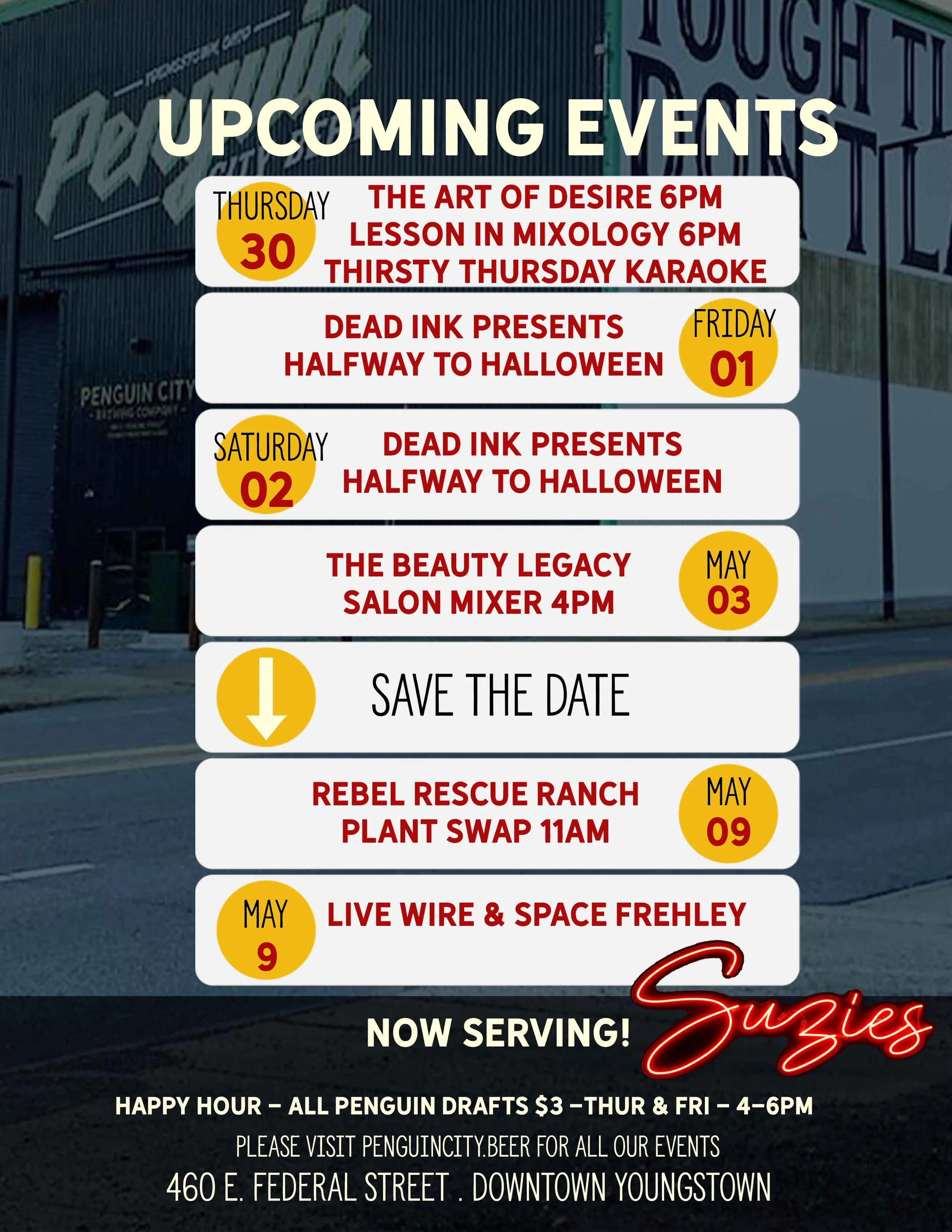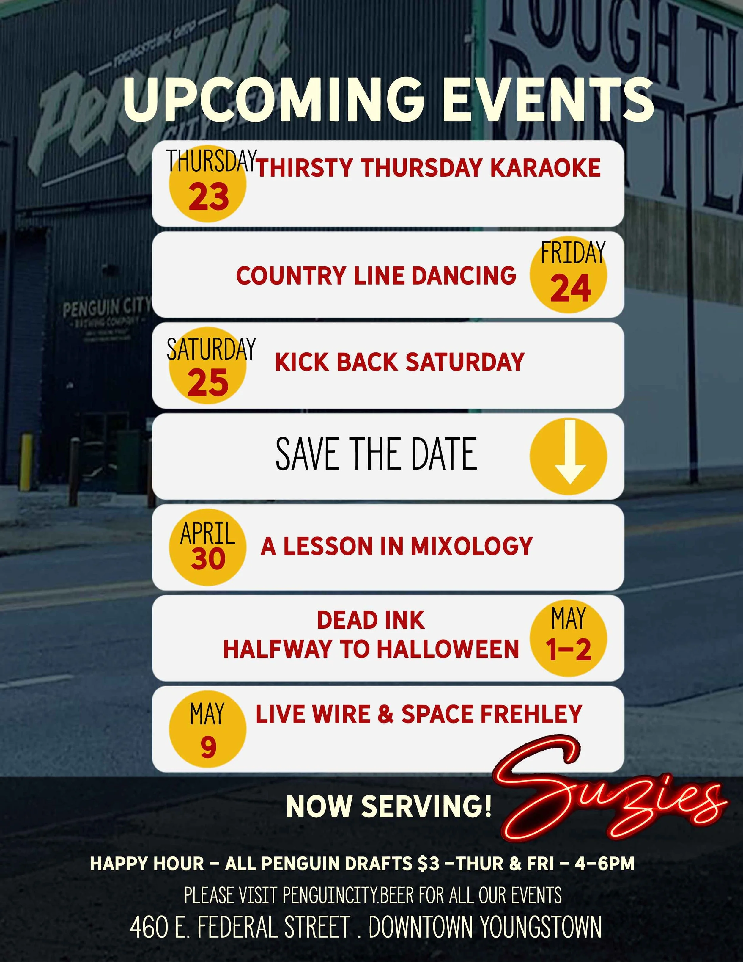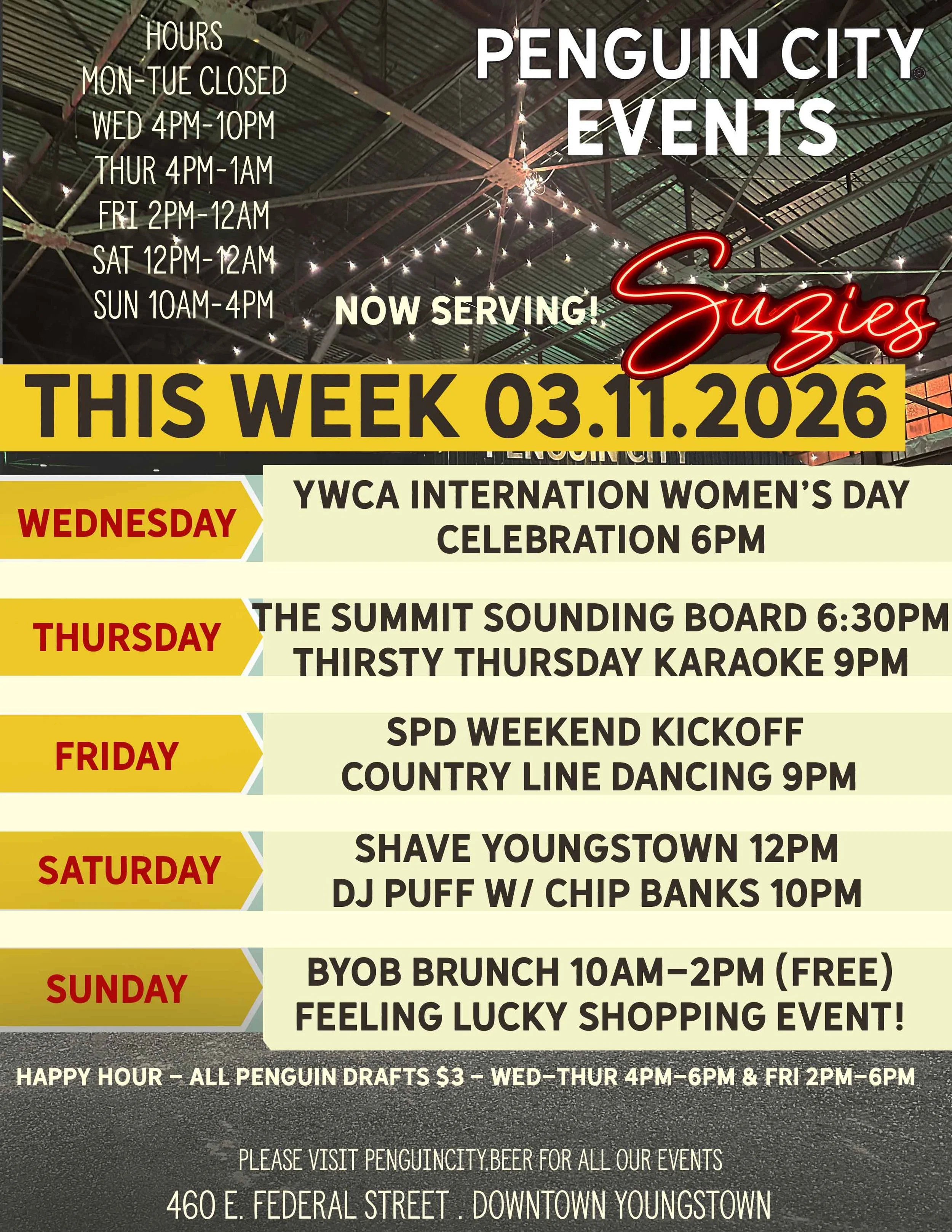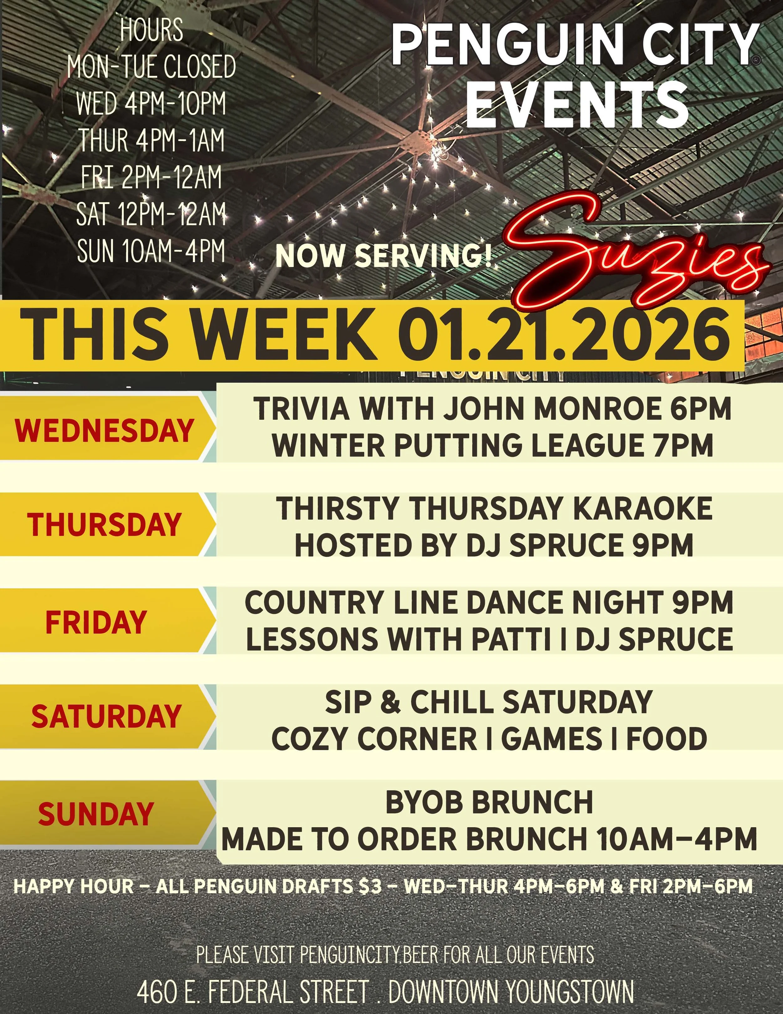 Located in the trendy Downtown East section of downtown Youngstown, our venue offers a unique post-industrial decor inside a working brewery that is sure to entice and charm your guests. With its high ceilings, historic charm, and large open areas - many of which overlook the brewing and canning facilities - this space is a true homage to the valley’s urban industrial roots and a unique place to host your event. Best of all, it is the perfect place to sample some of our limited edition taproom beers as well as our flagships Golden Ale, Penguin City Light and our delicious seasonal offerings. Cheers!